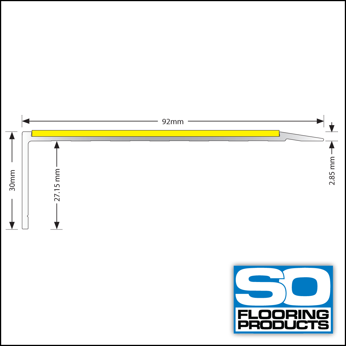 SO-SL60 aluminium stair nosing is a square edge, extra wide single channel profile with a 3.5mm gauge and ramp edge for use with vinyl, lino or no floor coverings.